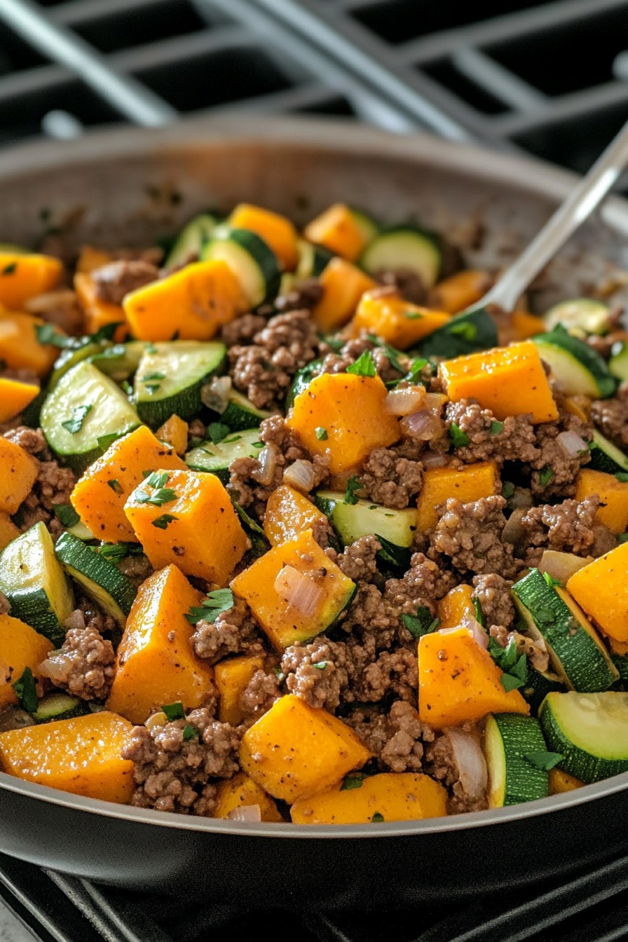 Ground Beef Skillet with Sweet Potatoes & Zucchini