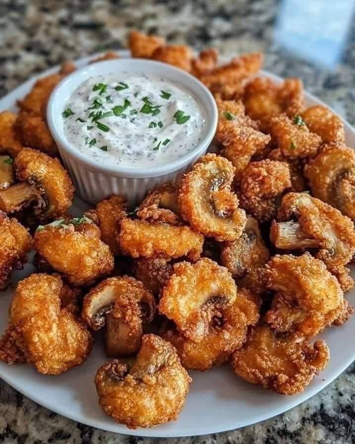 Enjoy crispy, golden fried mushrooms coated in a flavorful batter and paired with a cool, creamy ranch dip. Perfect as a party appetizer or a satisfying snack, this recipe brings a restaurant-quality dish right to your home.