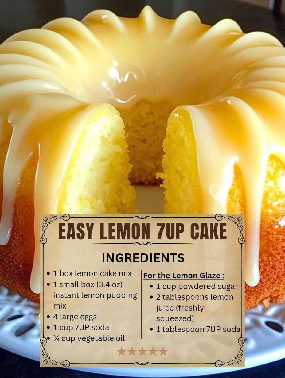 This Easy Lemon 7UP Cake is one of those old-fashioned Southern desserts that never goes out of style. It’s light, moist, and bursting with refreshing lemon flavor thanks to a splash of 7UP soda. With a tender crumb and a simple glaze, it’s the perfect cake for spring gatherings, Sunday dinners, or anytime you’re craving a bright, citrusy treat. If you love lemon desserts, this one is bound to become a family favorite!