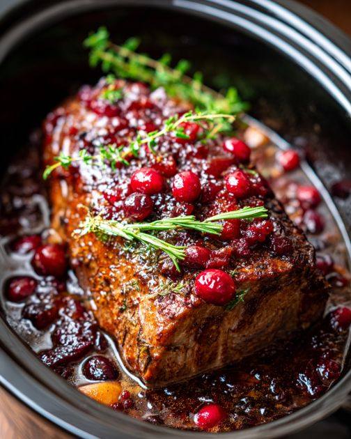 Slow Cooker 3-Ingredient Cranberry Pork Loin Roast