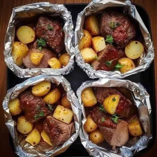 Garlic Steak & Potato Foil Packets are a delicious and easy-to-make meal, perfect for grilling, baking, or even campfire cooking. This recipe combines tender, juicy steak bites with seasoned potatoes, all wrapped in a foil packet for effortless cooking and cleanup. Infused with rich garlic butter and herbs, each bite is packed with flavor. Whether you’re making a quick weeknight dinner or prepping for an outdoor adventure, these foil packets are a hearty and satisfying option that the whole family will love!