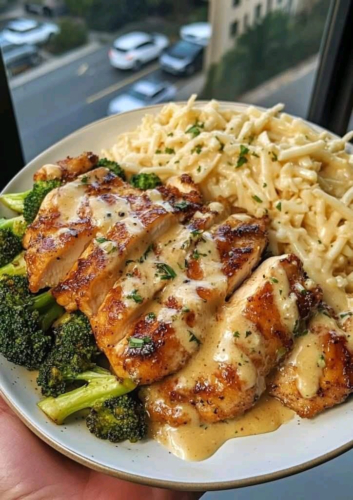 The result is a harmony of flavors and textures: tender chicken glazed in a sticky, spicy-sweet sauce; crisp-tender broccoli bursting with roasted flavor; and silky pasta coated in a decadent, cheesy sauce with just the right hint of fruity tang.