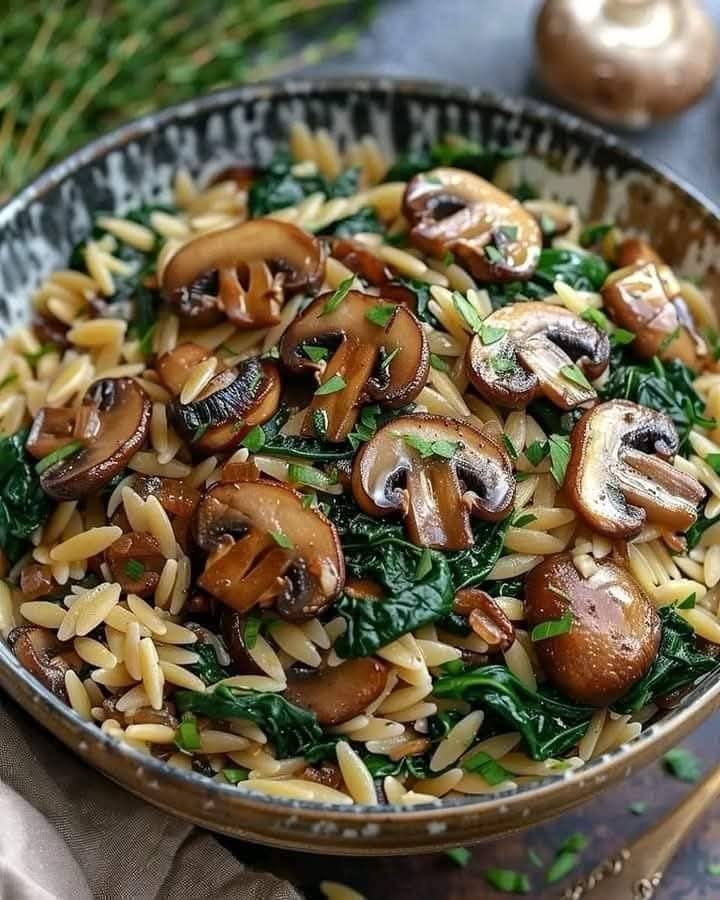 Indulge in the rich flavors of the Mediterranean with this Spinach Mushroom   Orzo recipe. This  creamy, savory, and nutritious   pasta dish combines the earthy taste of mushrooms, the vibrant flavor of spinach, and the comforting warmth of  orzo, all in one delicious and satisfying meal.