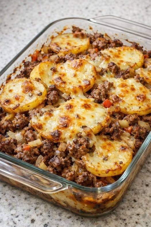 This Cheesy Ground Beef and Potato Casserole takes comfort food to the next level. Fluffy russet potatoes pair with a savory beef-and-onion mixture, turning classic “meat and potatoes” into a creamy, layered bake. The magic is in the homemade cheese sauce—mixing condensed soup, milk, and freshly shredded cheddar creates a silky texture that pre-shredded cheese can’t match. Cheesy Ground Beef and Potato Casserole Ingredients: For the Base: 1 1/2 lbs ground beef (80–90% lean) 1 medium yellow onion, finely chopped 2 garlic cloves, minced 1 tsp Italian seasoning Potato Layers: 2 lbs potatoes (Russet or Yukon Gold) 2 tbsp unsalted…